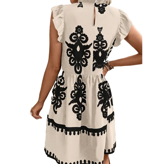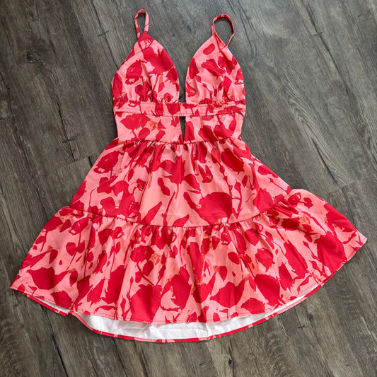 Červené mini šaty s viazaním na chrbte a drobným kvetinovým vzorom