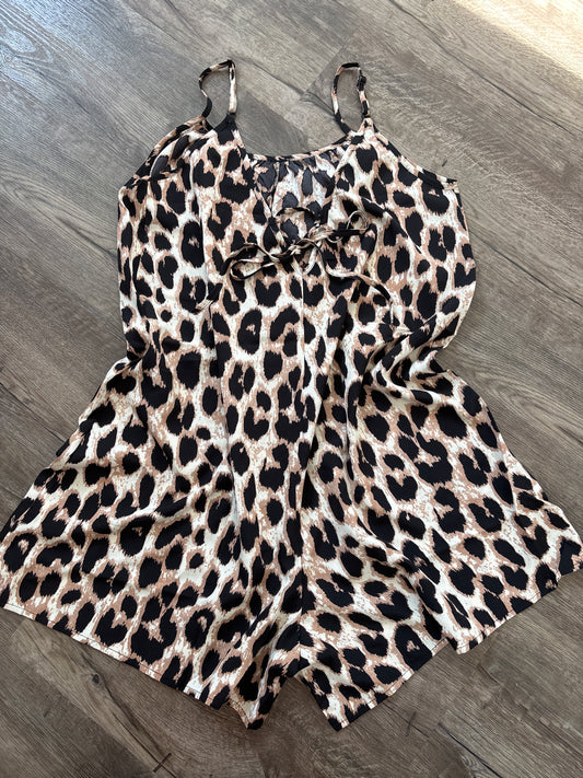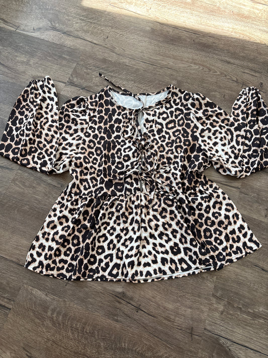 Leopardia blúzka s dlhým rukávom a šnurovacím výstrihom