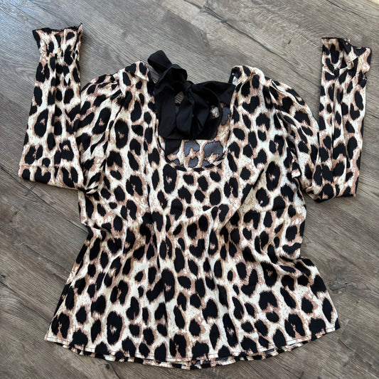 Leopardia blúzka s dlhým rukávom a mašľou na chrbte
