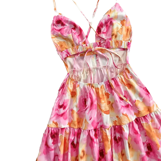 Letné mini šaty s kvetovaným vzorom a prekríženým chrbátom