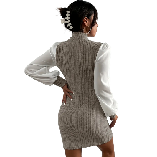 Svetlosivé rebrované pletené šaty s dlhým rukávom
