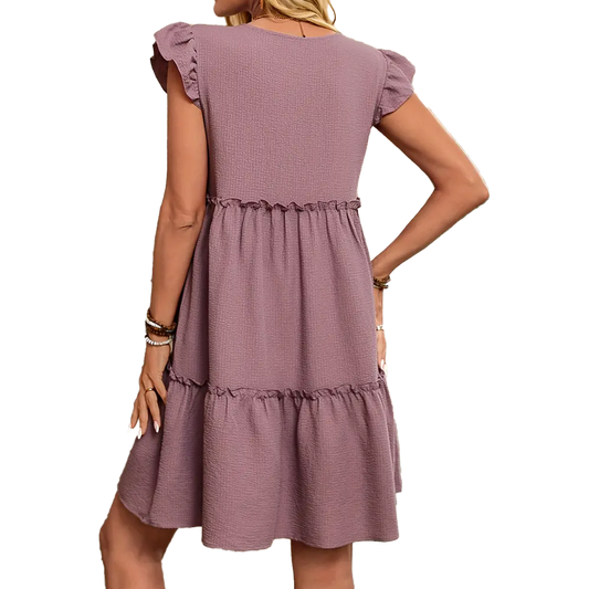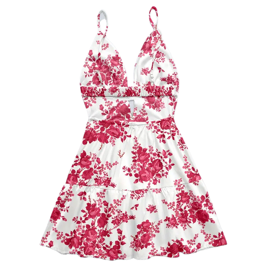 Ružovo-červené letné mini šaty na ramienka s volánovou sukňou