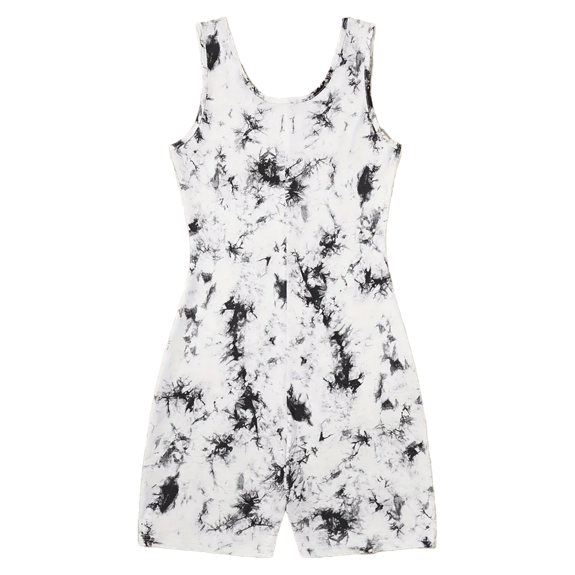 Dámsky čierno-biely batikovaný overal bez rukávov