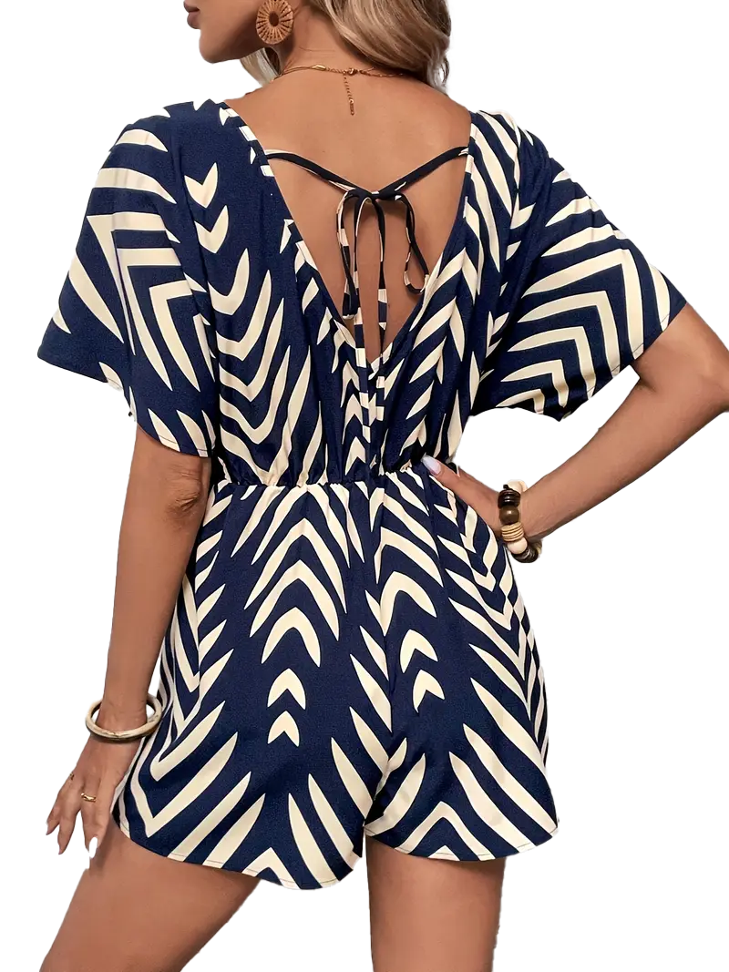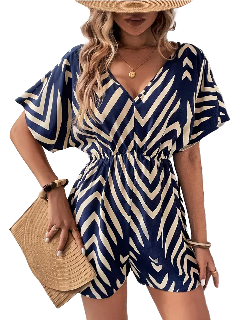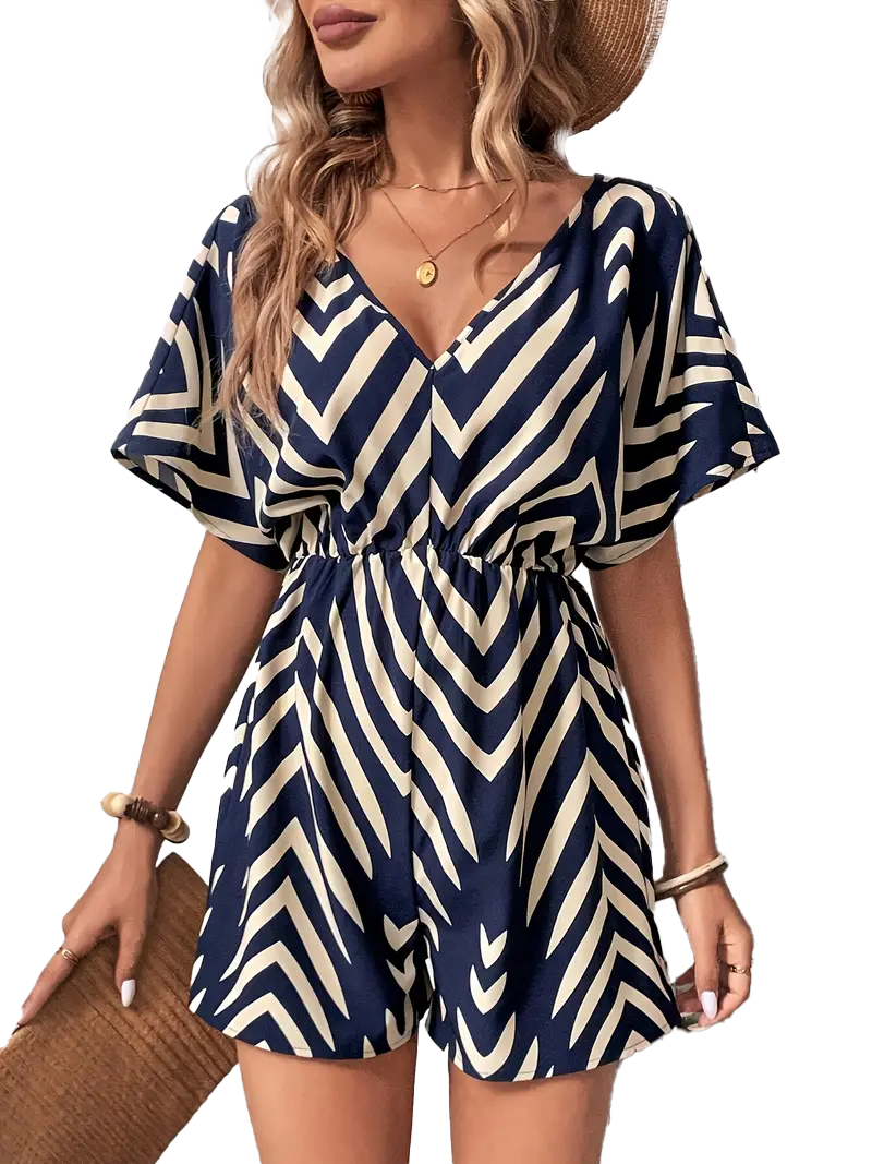 Dodaj svojmu outfitu sviežosť s týmto ľahkým a priedušným overalom. Kombinuje pohodlný voľný strih, krátke rukávy a moderný pruhovaný vzor, ktorý lichotí postave. Elastický pás zvýrazní siluetu, zatiaľ čo ľahký materiál z polyesteru so spandexom sa postará o voľnosť a komfort počas horúcich dní. Ideálny na prechádzky mestom, dovolenku aj bežné nosenie.