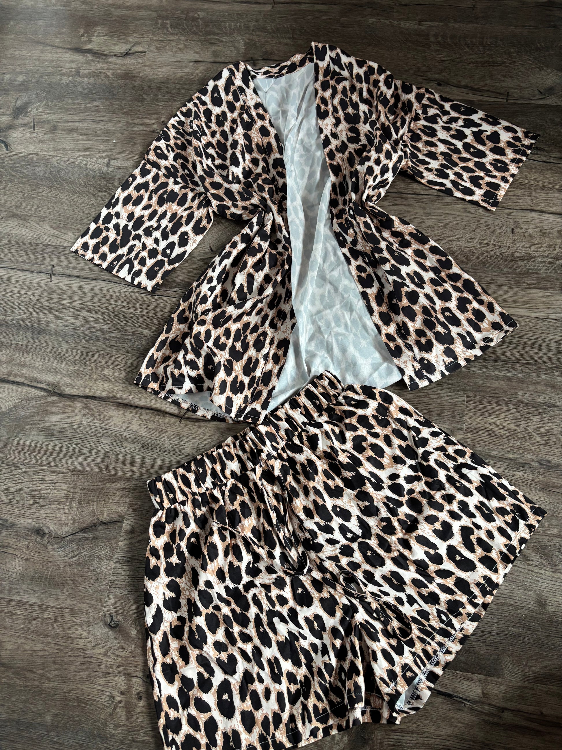 Leopardí dvojdielny set s voľnou košeľou a šortkami